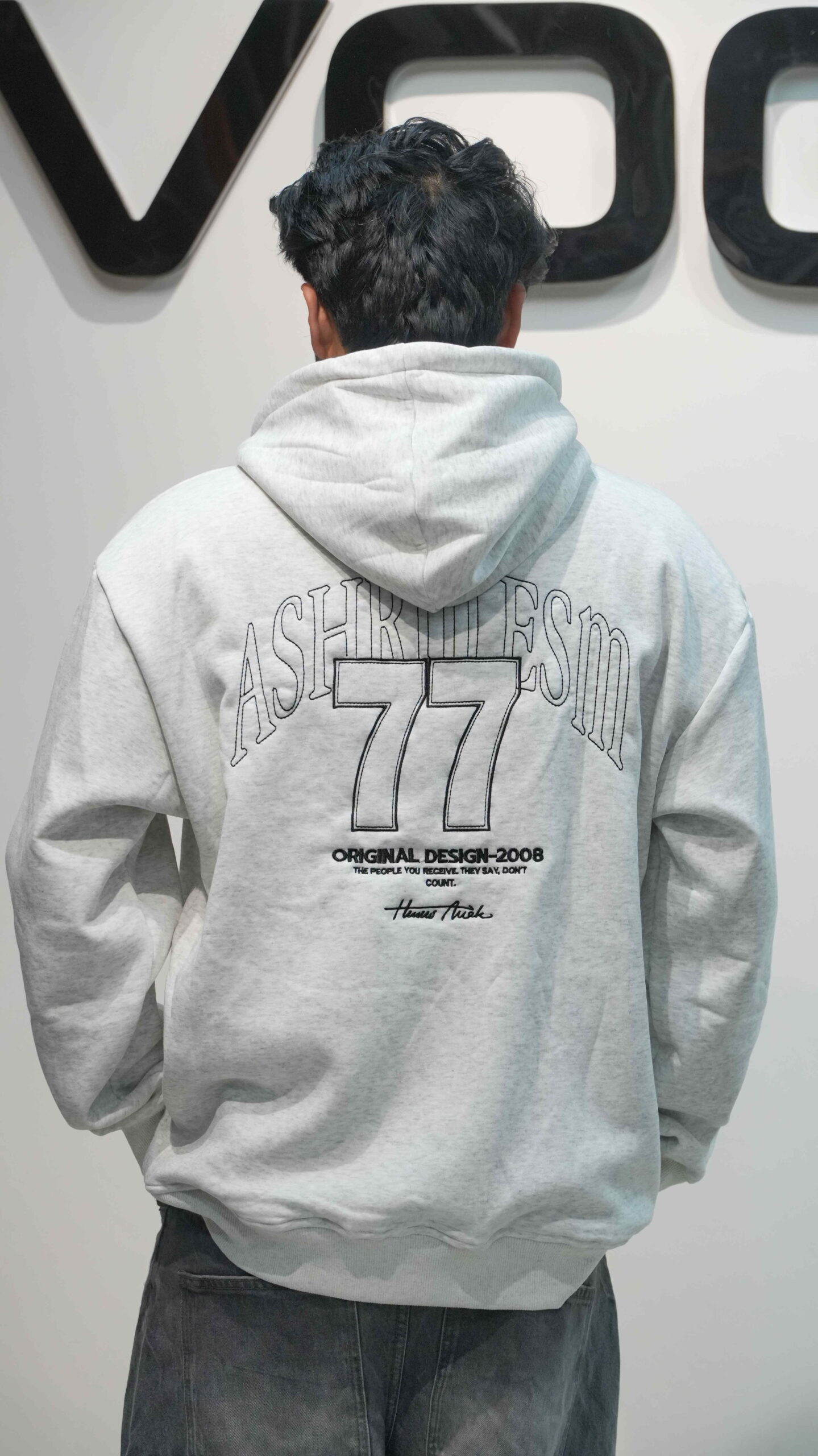 Make a statement from every angle with the Ash Rules ’77 Hoodie. Designed for the modern streetwear enthusiast, this piece combines a classic collegiate aesthetic with a relaxed, urban vibe. Featuring bold, arched outline embroidery on the front and a massive “77” varsity graphic on the back complete with “Original Design – 2008” signature detailing. Crafted from premium, soft-touch fleece, it offers the perfect drop-shoulder drape for effortless style.