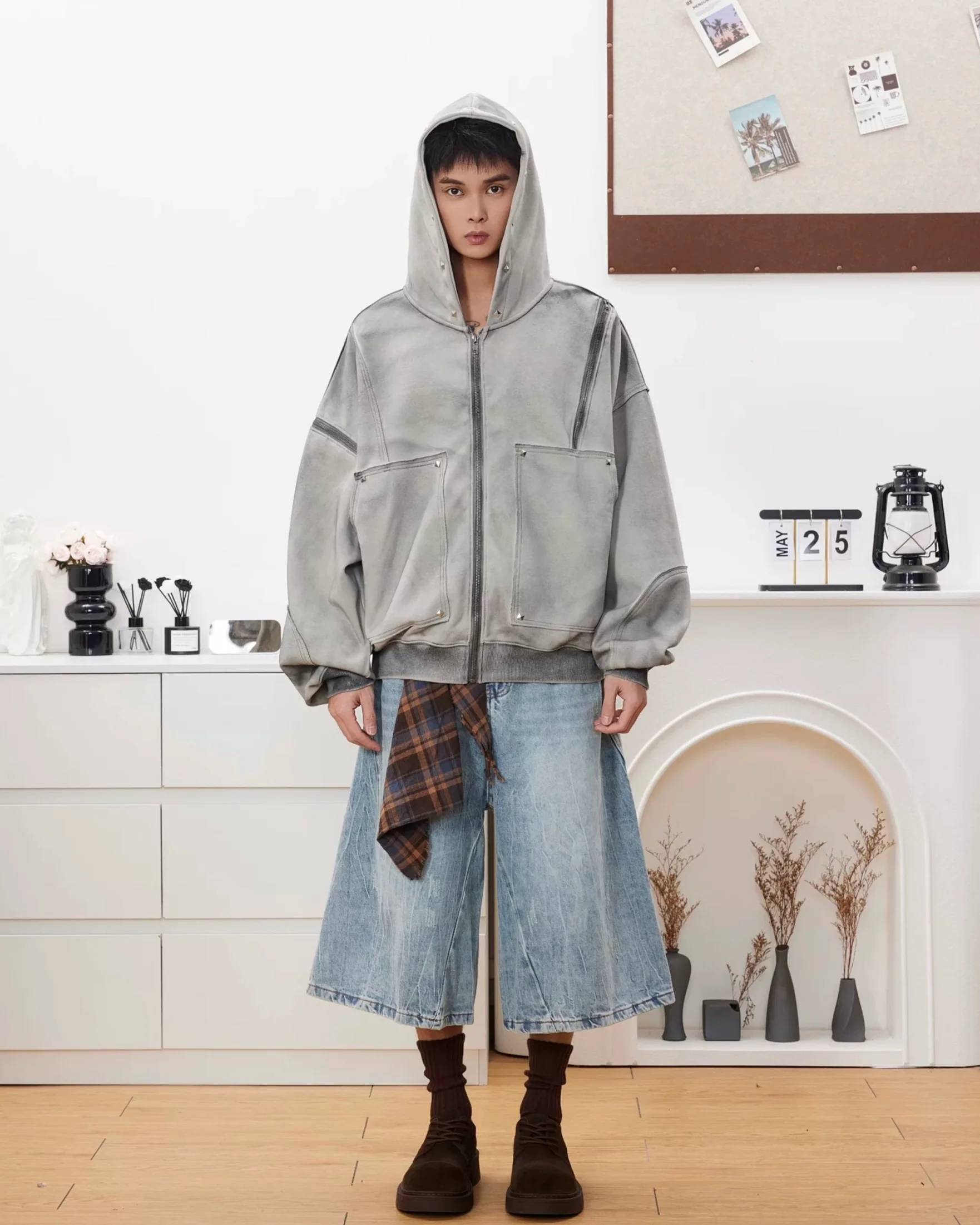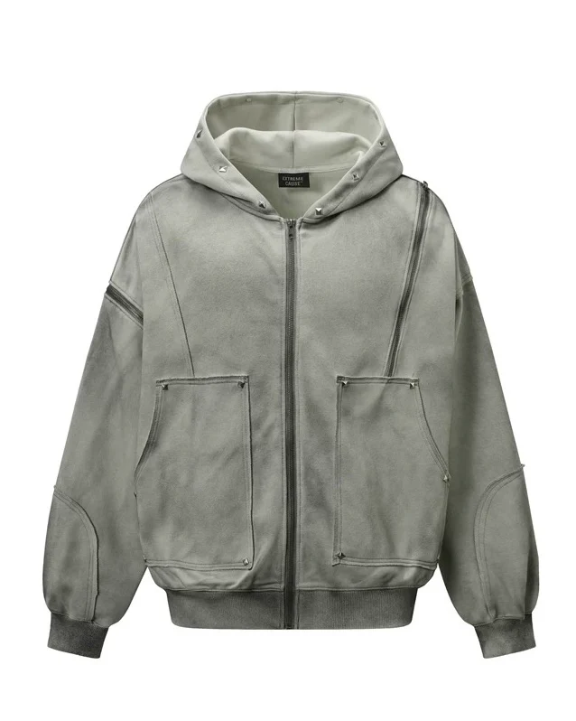 Unleash a raw, vintage edge with the Extreme Cause Paneled Full-Zip Hoodie Jacket. This isn’t just a hoodie; it’s a statement piece built on a foundation of high-street utility and grunge aesthetics. Designed with an intentionally distressed finish and a heavy, structured feel, this jacket is perfect for layering and achieving a genuinely authentic, lived-in look that defines the Extreme Cause style.